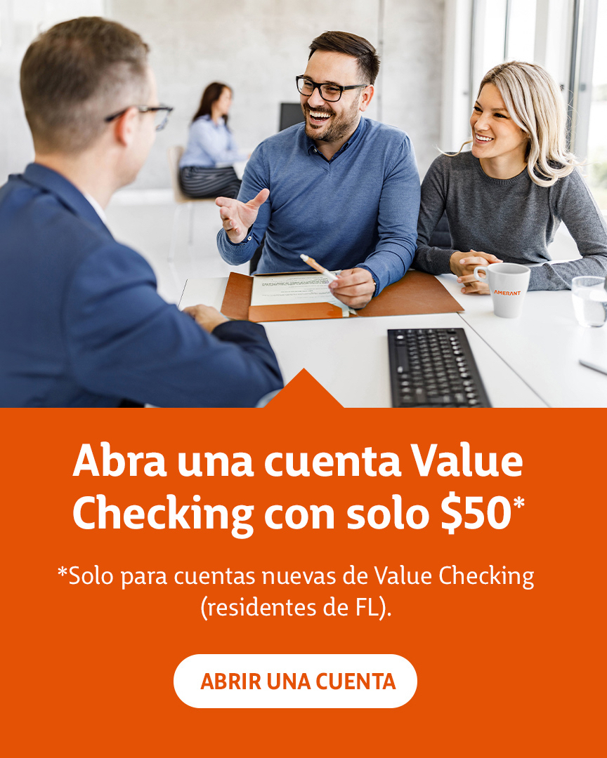 Puede hacer depósitos con cheques y en efectivo en cualquier cajero automático en una sucursal de Amerant las 24 horas del día, los 7 días de la semana. Ofrecemos transacciones sin recargos, incluidos retiros de efectivo y consultas de saldo en cualquiera de nuestros cajeros automáticos disponibles, incluidas las sucursales de Amerant Bank, Publix Presto! y la red Allpoint en las tiendas minoristas participantes.