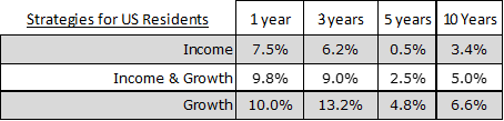 Notes: Asset class performance is in USD and refers to the following indices: Equities: US Large Caps (S&P 500), Emerging Markets (MSCI EM), Europe (MSCI Europe), Japan (MSCI Japan). Fixed Income: 10-Yr. US Treasuries (BofAML US Treasury Current 10-Yr.), Emerging Markets Sovereign (USD) (EMB ETF), Emerging Markets Sovereign (LCL) (LEMB ETF), US High Yield (BofAML US HY Master II), US Investment Grade (BarCap US Aggregate Bond). Source: Morningstar. (1) Strategy returns net of mutual fund expenses and Amerant Investments standard management fees.