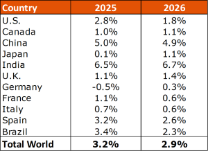 According to the Organization for Economic Co-operation and Development (OECD), the world economy is expected to grow by 3.2% in 2025, before slowing down to 2.9% in 2026. Global growth outperformed expectations in early 2025, driven by emerging markets and U.S. resilience, but rising tariffs, softening labor markets, stalled disinflation, and looming risks such as further trade barriers and financial instability cloud the outlook.