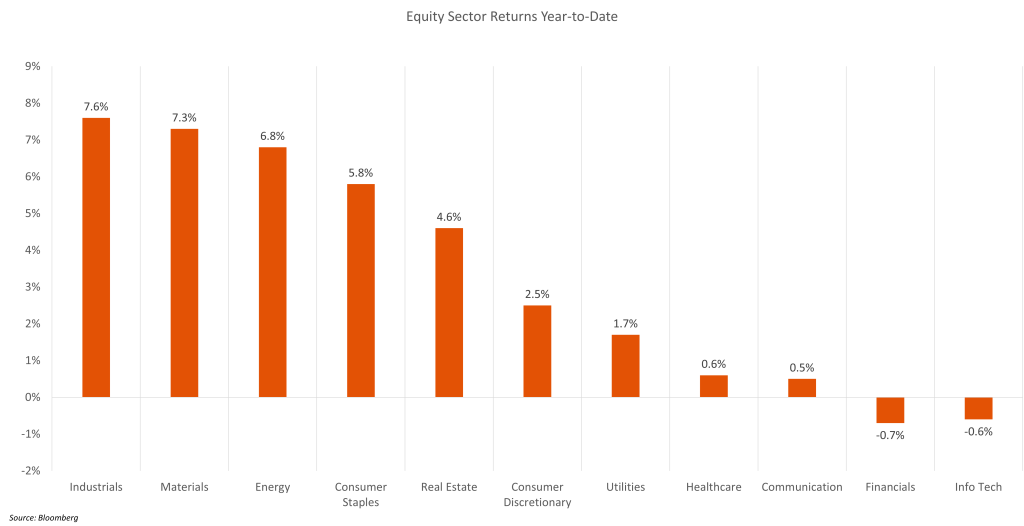 - Equity markets continue to broaden past the Mag 7. The long end of the Treasury curve has sold off, but the rest of fixed income is off to a positive start for the year.