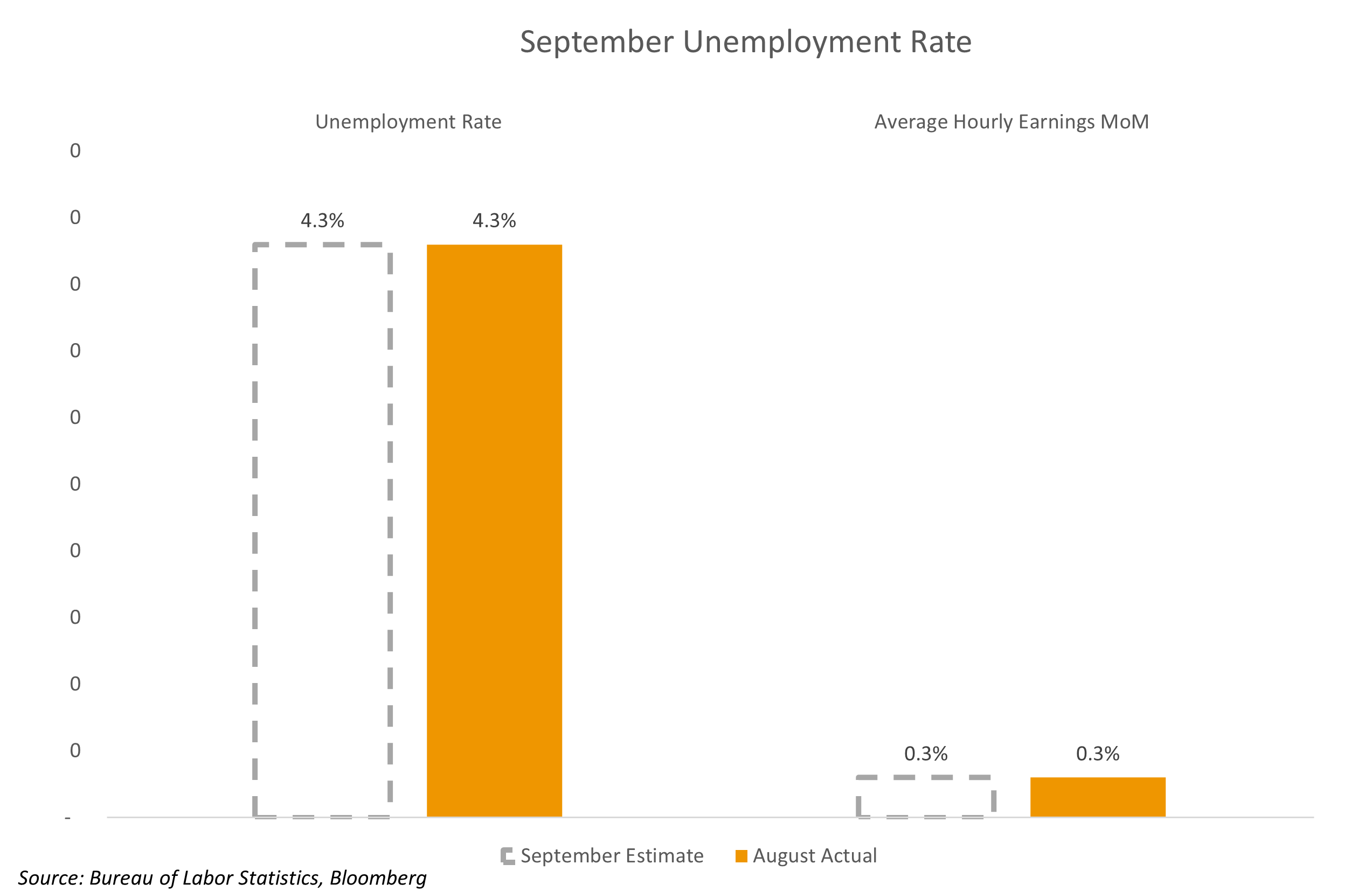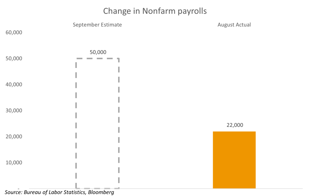 - Macroeconomic data will also restart this week. Importantly, we will get the delayed September payroll report. Nonfarm payrolls are expected to rise by 50K, from 22K in August, while the unemployment rate is expected to hold steady at 4.3%.