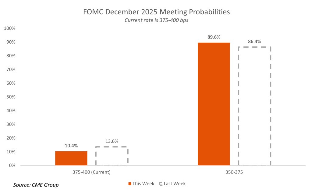 - We also expect Fed Chair Powell to provide comments about the committee’s thinking for the path of interest rates in 2026, although we expect markets to look past his press conference commentary in preparation for a new Fed Chair next May.