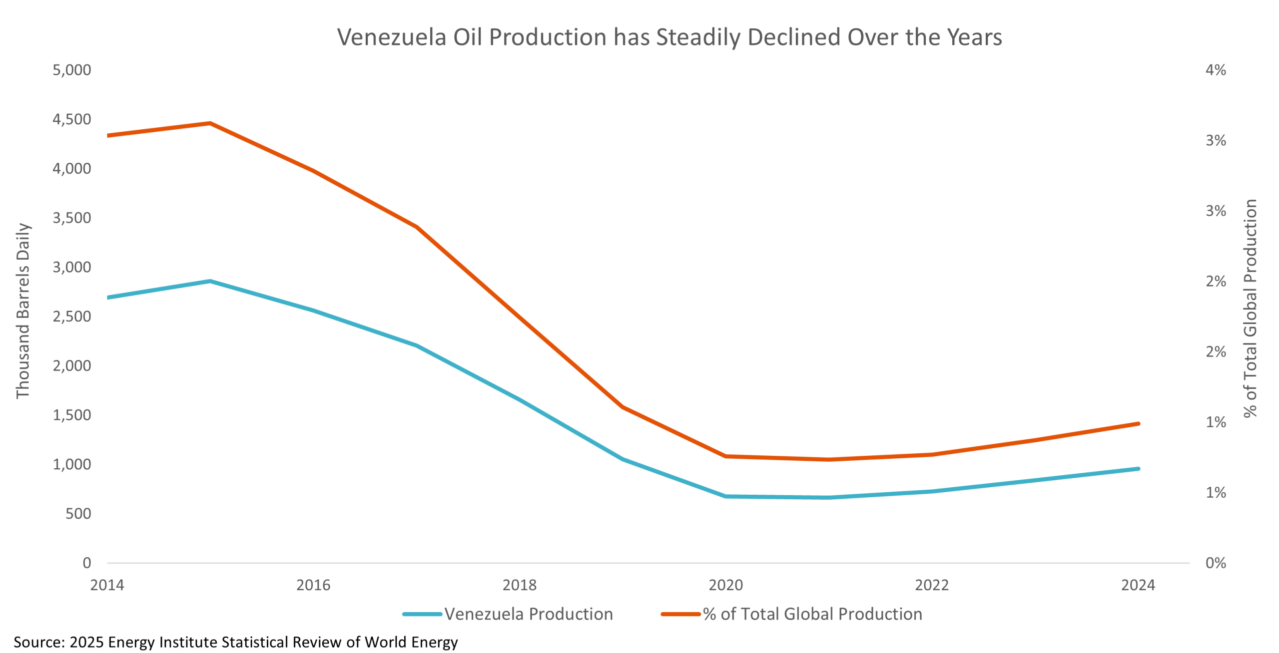 According to a report by Bloomberg News, tanker loadings at the Jose port terminal are expected to rise to over 800,000 barrels per day in March, which would be the highest volume from the port since 2019. Similarly, a recent research report from Morgan Stanley stated their view that oil output may recover more quickly than previously forecast. We note that Venezuela’s production remains below 1 million barrels per day, compared to over 3 million barrels per day in years past.